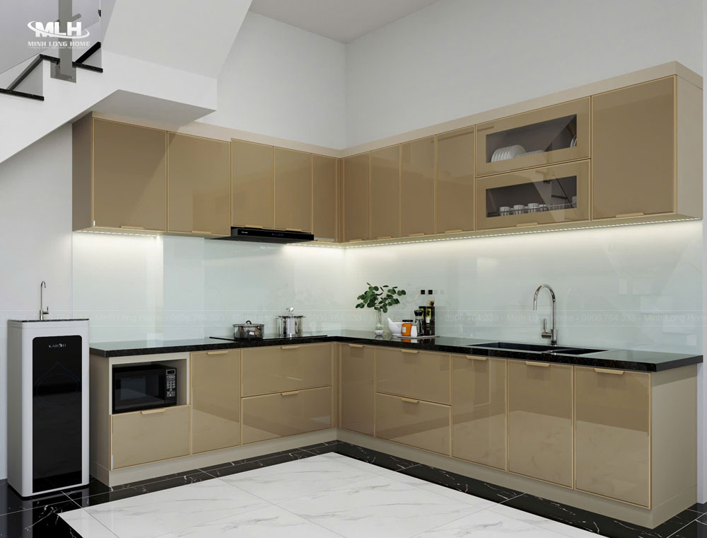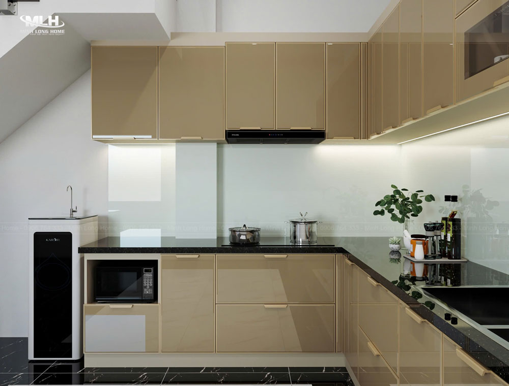 Tủ bếp nhôm kính màu vàng kim TNML08